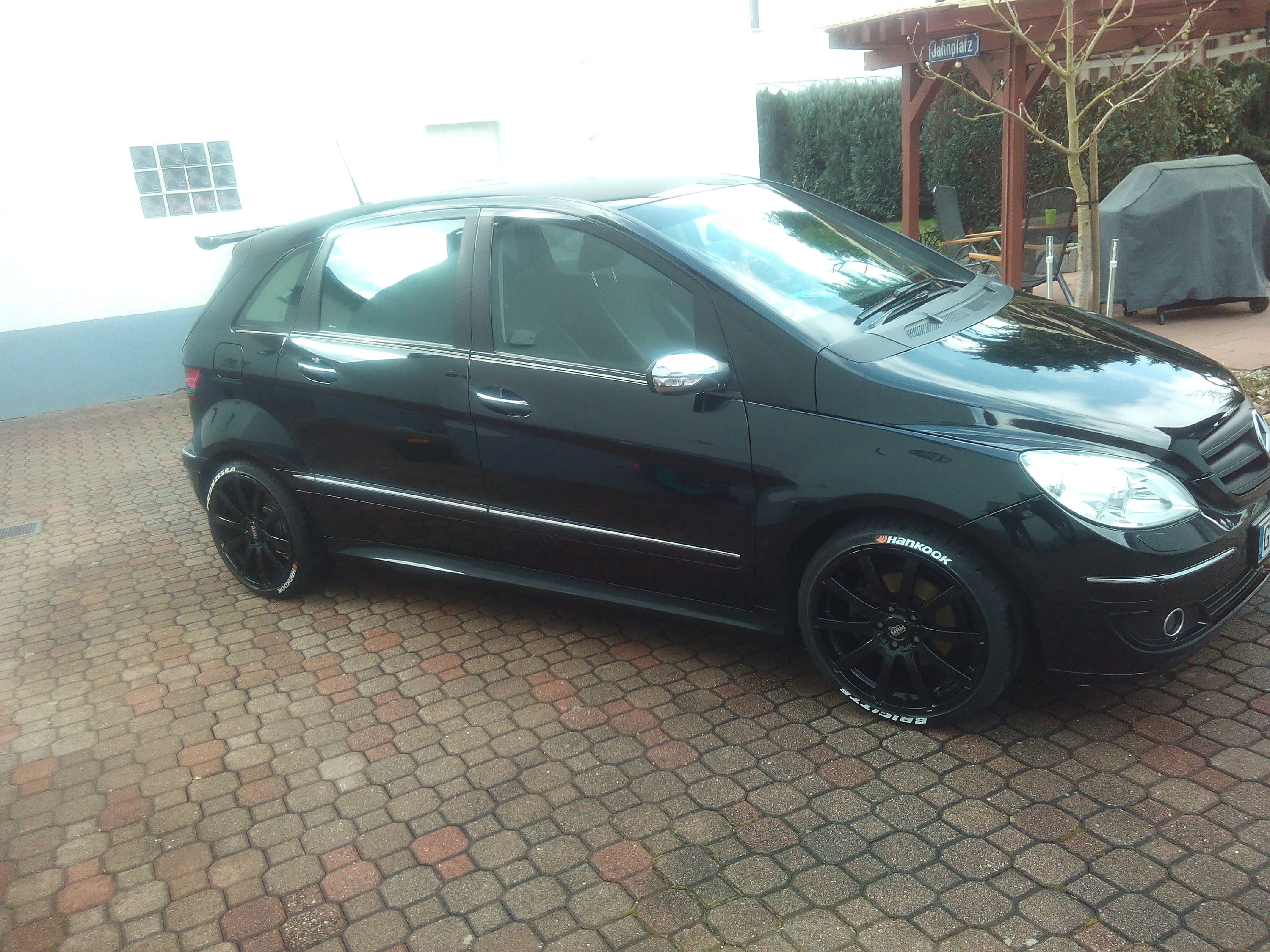 Hallo ich stelle mal vor.B200 turbo Benziner gechipt auf 240PS, Edelstahl Auspuff ab kat .215/45 18zoll spurplatten v.20 mm,,h 25 mm pro Seite.